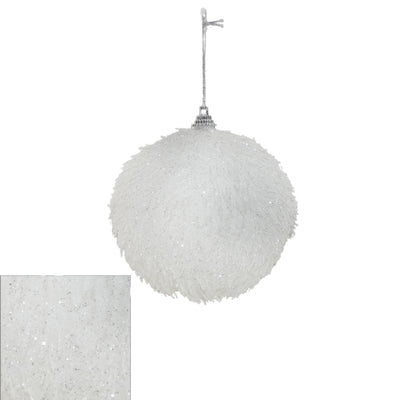 - Pack contains 1 white snowball effect glitter and feather Christmas bauble